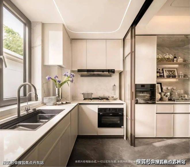 边,视觉上比较统一,也方便推拉。据说交付的时候水槽下面的橱柜底部还会配上感应式灯带。